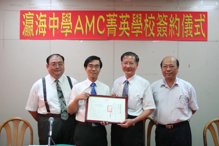 瀛海中學榮獲 (AMC) 菁英學校簽約認證儀式說明 本市私立瀛海中學與美國 AMC( 全美中學數學分級能力測驗 ) 在台代表正式簽約。該校將成為南部地區唯一 AMC菁英學校。目前全台僅有五所,北部兩所,中部兩所 ( 曉明女中,明道中學 ) 。近年來該測驗已成為台灣地區高國中生測驗數學能力的指標考試,其地位就如同全民英檢之於英文學習。 AMC ,American Mathematics Competitions ( 全美中學數學分級能力測驗 ) 主辦單位為「美國數學協會」( The Mathematical Association of America, MAA )。台灣地區承辦單位:台灣區 AMC 測驗委員會。 此項測驗為一群對台灣數學教育相當用心的師大數學系教授所引進。其目的為培育數理人才,提升國家整體競爭力並與國際接軌。 AMC 測驗為世界具公信力的數學測驗,該測驗提供多樣化的評量工具,讓學生了解自己的數學能力。 去年全球報考人數就超過六十萬人次 ,並有三十二 個國家參與測驗,因規模跨及各國,使其更具有公信力與鑑別度。曾經參加國際奧林匹亞數學競賽,代表美國隊得到「四金二銀」優異成績的學生,也都是從 AMC 測驗中選拔出來的。「電腦大亨比爾蓋茲當年亦是在這項考試上獲得滿分得以進入哈佛大學就讀。而目前台灣的大學入學管道之一的學測 ,亦有許多學生因在 AMC 考試表現突出而獲得入學機會,」何董事長表示。「瀛海與AMC合作後,相信可以提供學生一個更優質更國際化的數學學習環境。對本校學生將來大學入學考試的競爭力提高是可預期的。」 該測驗因應不同學生程度有三種不同考試項目,包括 AMC 8, AMC 10, AMC 12 。 AMC 8 針對國一國二學生, AMC 10針對國三 ,高一生,而 AMC 12 針對高二、三生。學生可依據其能力及程度參加不同項目考試,了解自身數學程度。瀛海將從 國中部及高 中部同步實施。 瀛海中學能與該協會簽約認証原因是,瀛海中學歷年來有相當多學生參與此測驗,表現突出,多人獲得滿分,其中亦有曾經得過全世界第二名者。而且,瀛海向來非常重視數學教育。每年都會在學期中舉辦數學 週活動以提高學生學習興趣。在數學週中,該校數學老師會設計各種趣味及與生活有關的題目供學生搶答。歷年來,學生反應非常熱列。 此外,瀛海這幾年於台南地區舉辦「台江盃數學競試」,已經引起台南地區學子對數學活動參與的風潮。往年參與學生人數幾已達千人。尤其活動結束時,由該校資深數學老師當場解題,更是反應熱烈。許多坊間補習班已將該競試試為一年一度盛事,皆會鼓勵班上學生參加,挑戰自己的數學功力。 瀛海中學成為菁英學校後,該校數學老師接受 AMC 專業認證,成為具有 AMC任教資格老師。而且該校數學授課內容將引進AMC教材。成為上課教科書。而且學生可上網同步檢測與學習,及時分析教學成效,老師及學生本身可掌握動態學習歷程。家長可於線上意見 反應。對該校整體數學學習成果之提升將非常顯著。 |